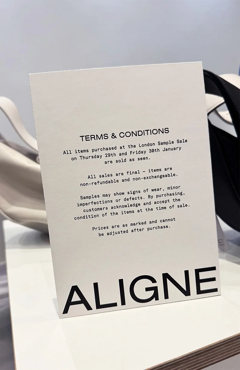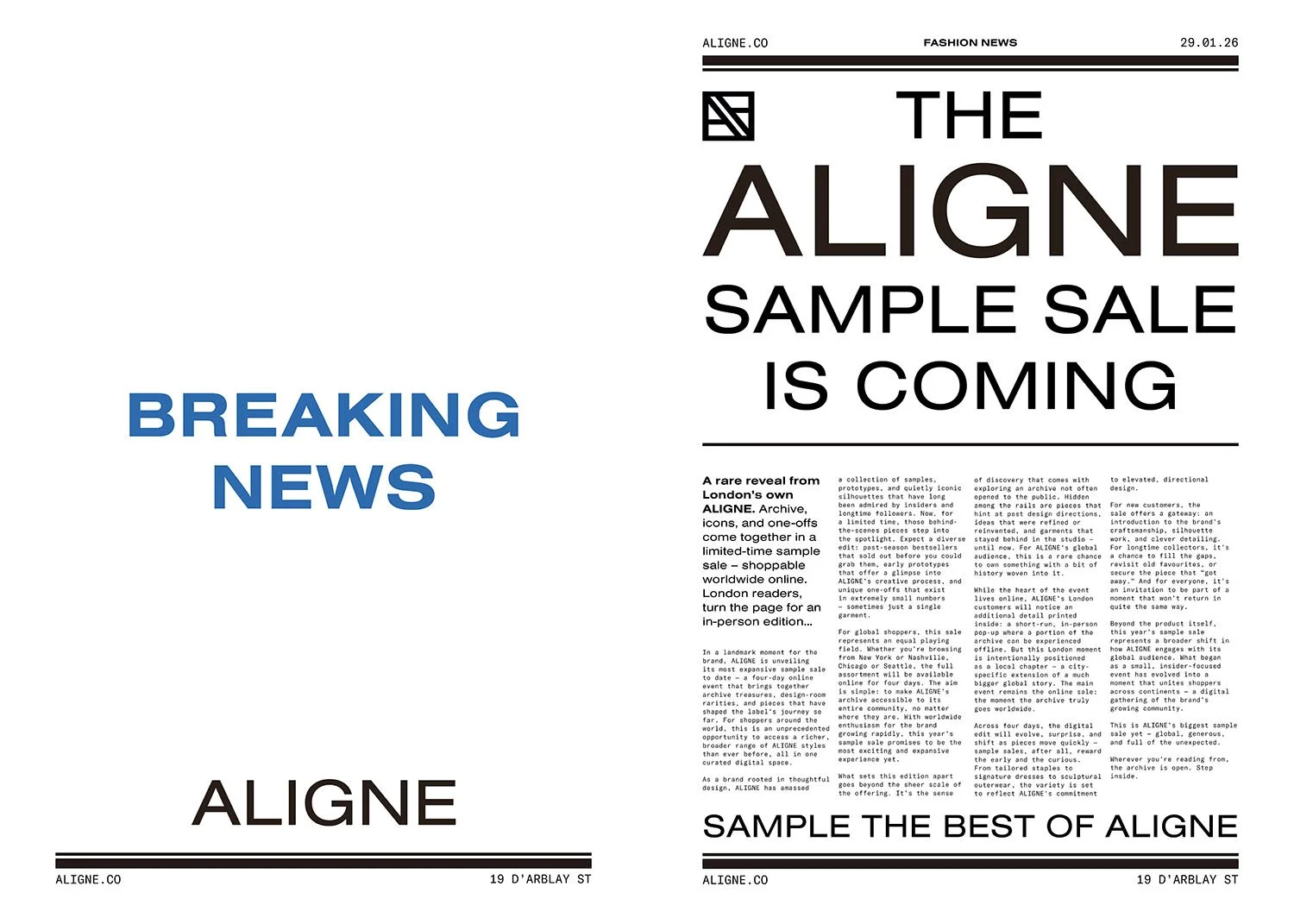 The event was met with positive sentiment throughout, gaining coverage across credible titles including SheerLuxe and The Standard, successfully establishing ALIGNE’s first store-led sample sale as both a commercial and brand moment.